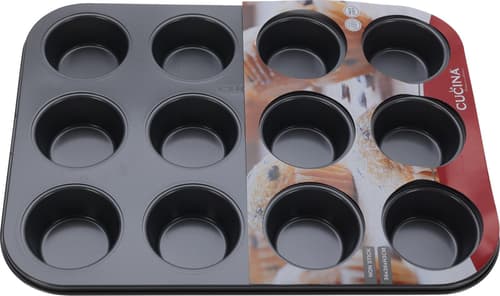 Diese Muffin‑Backform dient zum Backen von Muffins, Cupcakes oder ähnlichen Gebäckstücken. Sie kann in den Backofen gestellt werden und bietet eine gleichmäßige Hitzeverteilung. Typischerweise ist sie mit einer Antihaftbeschichtung versehen oder aus hitzebeständigem Metall gefertigt.