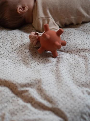 FILIBABBA Motorikball - Baby Sense Ball Rust Motorikball aus 100% Naturkautschuk hergestellt. Der Ball ist mit Noppen versehen, die auch sehr kleinen Händen einen guten Halt bieten. Alle Kanten sind weich, was bei wundem Zahnfleisch hilft und gleichzeitig den Tastsinn stimuliert. Ein großartiges Produkt für die Entwicklung der Feinmotorik des Kindes.