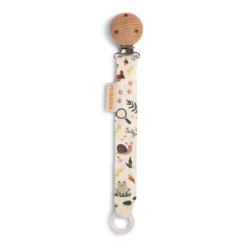 FILIBABBA Schnullerkette - Little Wonders Unsere praktische Schnullerkette aus GOTS-zertifizierter Biobaumwolle ist mit einem schönen Holzknopf mit einer Metallspange versehen, mit der sie an der Kleidung Deines Babys befestigt werden kann. So sorgt unsere Schnullerkette dafür, dass der Schnuller immer in der Nähe ist und nicht auf den Boden fällt. Am anderen Ende lässt sich der Schnuller leicht mit Klettverschluss befestigen.