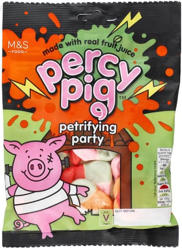 Ein Halloween‑Themenmix aus Fruchtgummis nach „Percy Pig“-Art, hergestellt mit echtem Fruchtsaft und ohne künstliche Farbstoffe oder Aromen.