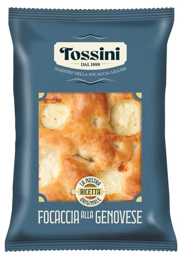 Es handelt sich um ein Hefebackwerk, das nur aus wenigen Zutaten besteht: Mehl, Wasser, Öl, Hefe und Salz. Sie ist leicht verdaulich, und die typischen Vertiefungen, die noch von Hand gemacht werden, sind ein besonderes Merkmal der Focaccia, das die Bäckerei-Konditorei Tossini bewahren möchte, um den Konsumenten ein Qualitätsprodukt zu garantieren – so, als hätte man es beim örtlichen Bäcker gekauft.