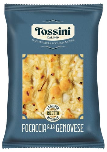Es handelt sich um ein Hefebackwerk, das nur aus wenigen Zutaten besteht: Mehl, Wasser, Öl, Hefe und Salz. Sie ist leicht verdaulich, und die typischen Vertiefungen, die noch von Hand gemacht werden, sind ein besonderes Merkmal der Focaccia, das die Bäckerei-Konditorei Tossini bewahren möchte, um den Konsumenten ein Qualitätsprodukt zu garantieren – so, als hätte man es beim örtlichen Bäcker gekauft.