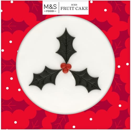 Der Top Iced Christmas Cake von M&S ist ein reichhaltiger All‑Butter‑Früchtekuchen mit saftigen Weintrauben, glacé Kirschen und einer dicken Marzipan‑ und Zuckerglasur‑Schicht. Er eignet sich als klassisches Festtagsgebäck für die Weihnachtszeit.