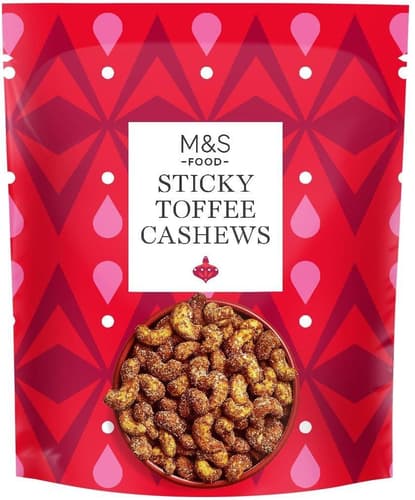 Die Sticky Toffee Cashews von M&S bestehen aus gerösteten Cashewkernen, die mit dunklem Muscovado‑Zucker und britischer Butter glasiert wurden. Diese Kombination sorgt für eine süß‑karamellige Süßigkeit mit knuspriger Textur.