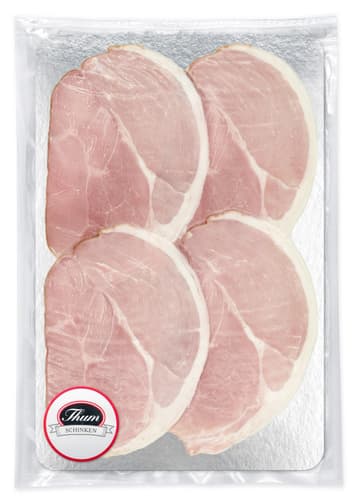 Der Beinschinken aus der Schinkenmanfaktur THUM wird nach Prager Art im Ganzen hergestellt und nur sanft mit Salz und einer Prise Zucker gepökelt. Händisch gebunden, schonend gegart, mild über Buchenholz geräuchert und dünn aufgeschnitten entsteht eine echte Wiener Delikatesse.