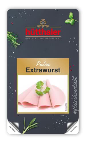 Ein echter Klassiker für die Jause, jetzt in leichter Puten-Variante. Unsere Puten-Extrawurst ist besonders zart und mild im Geschmack. Fertig in Scheiben geschnitten ist sie der perfekte Belag für dein Brot, deine Semmel oder einfach pur als leichter Snack.