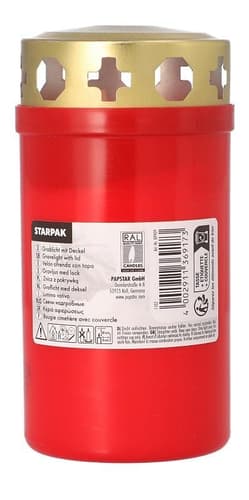 Grablicht mit Golddeckel rund Ø 6,4 cm · 12,5 cm rote Hülle