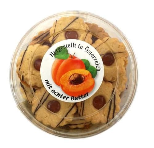 Eine traditionelle, österreichische Köstlichkeit, die auf der Zunge zergeht. Unsere Marillenaugen bestehen aus einem zart-mürben Haselnussmürbeteig, der mit feinster Marillenmarmelade (Aprikosenmarmelade) gefüllt wird. Ein süßer Genuss, der perfekt zum Kaffee oder als Snack für zwischendurch passt.
