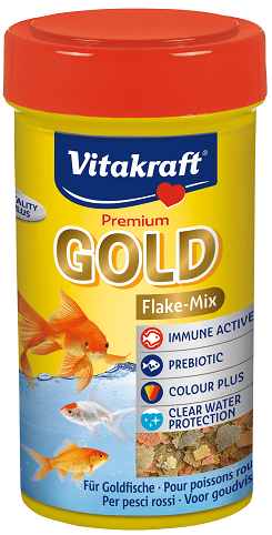 Der GOLD Flake-Mix mit gesunden Weizenkeimen, Spirulina und proteinreichen Krebstieren ist ideal zur Ernährung von Goldfischen. Das hochwertige Futter mit drei verschiedenen Flocken garantiert den Tieren eine umfassende Versorgung mit allen wichtigen Nahrungsbausteinen und fördert sowohl Vitalität als auch Farbenpracht. Das im Flocken-Mix enthaltene Prebiotikum unterstützt zudem die Darmflora und eine optimale Futterverwertung.