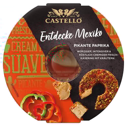 Castello Pikante Paprika ist ein cremiger Weichkäse mit einer würzigen Paprikanote. Die Kombination aus mildem Käse und leicht pikanten Gewürzen verleiht ihm einen ausgewogenen, aromatischen Geschmack. Er passt gut zu Brot, Crackern oder als Teil einer abwechslungsreichen Käseplatte.