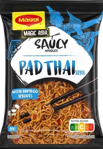 Die Maggi Magic Asia Noodles Pad Thai sind Instantnudeln mit einer würzigen Pad‑Thai‑Würzmischung, inspiriert von thailändischer Streetfood‑Küche. Sie werden mit Gemüse und Bambussprossen kombiniert und lassen sich schnell zubereiten.