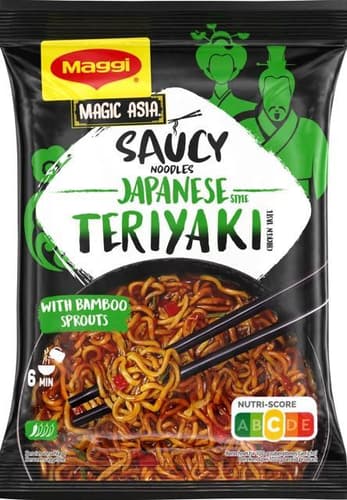 Die Maggi Magic Asia Noodles Japanese Teriyaki sind Instantnudeln mit einer süß-würzigen Teriyaki-Sauce, inspiriert von japanischen Geschmacksprofilen. Sie lassen sich schnell zubereiten und eignen sich gut als unkompliziertes Mittag- oder Abendessen.