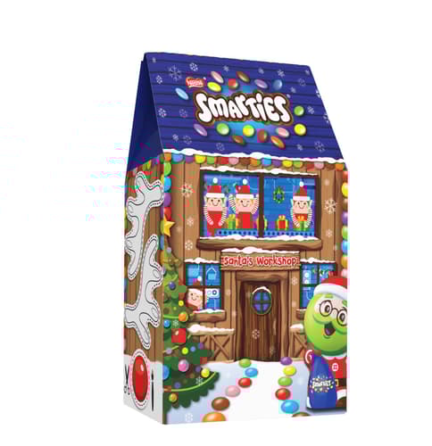 Smarties Santa’s Workshop ist ein saisonales Schokoladenprodukt, das traditionell zur Weihnachtszeit angeboten wird. Die Verpackung zeigt ein weihnachtliches Motiv, und im Inneren finden sich bunte Smarties oder eine Kombination aus Milchschokolade mit Smarties‑Stückchen. Es dient häufig als festlicher Snack oder kleines Geschenk.