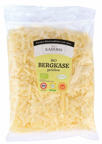 Der Walchseer BIO Bergkäse gerieben ist ein kräftiger Hartkäse aus biologischer Herstellung. Er wird aus hochwertiger Heumilch von Alpenkühen gewonnen und fein gerieben abgepackt. Ideal zum Überbacken, Verfeinern von Nudelgerichten oder als würzige Ergänzung zu Aufläufen.