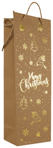Flaschentasche Weihnachten Merry Christmas braun 12x9x36cm