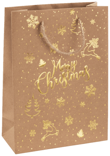 Geschenktasche Weihnachten Merry Christmas Kraftpapier braun 25x34x8,5cm 140g/m²