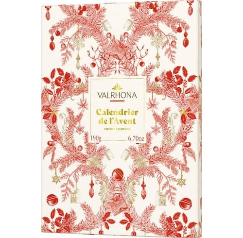 Der Adventskalender von Valrhona enthält eine Auswahl von 24 Schokoladen- und Pralinenüberraschungen. Insgesamt sind zehn verschiedene Sorten enthalten, die vom französischen Chocolatier Valrhona zusammengestellt wurden. Er eignet sich für die tägliche Portion Schokolade in der Vorweihnachtszeit und richtet sich an Liebhaber hochwertiger Kakaoprodukte.