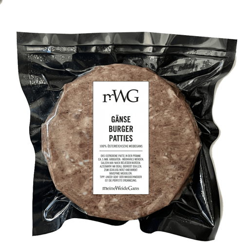 - Burger-Patties aus hochwertigem Gänsefleisch von Weidegänsen.