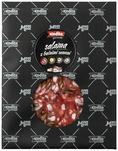 Eine einzigartige Salami-Spezialität, die den Geschmack der pannonischen Region feiert. Unsere Salami wird nach traditioneller Art hergestellt und mit knackigen, gerösteten Kürbiskernen verfeinert. Das Ergebnis ist eine herzhafte, würzige Salami mit einem angenehm nussigen Biss – fertig in feine Scheiben geschnitten.