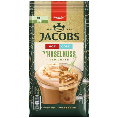 Heiß oder kalt die verführerische Komposition von JACOBS Typ Latte mit Haselnuss-Geschmack genießen.