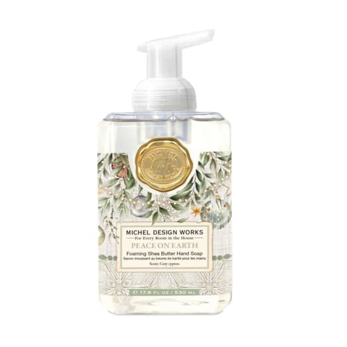 Michel Design Works Seifenschaum Peace On Earth verwandelt die Handreinigung in ein luxuriöses Erlebnis. Der Pumpspender erzeugt einen cremig-festen Schaum, der deine Hände sanft reinigt und perfekt hydratisiert. Angereichert mit feuchtigkeitsspendender Sheabutter und Aloe Vera hinterlässt er ein seidig weiches Gefühl und einen zarten Duft von Flieder und lila Blüten, untermalt von einem Hauch weißer Blumen. Umweltfreundlich durch den sparsamen Einsatz von Flüssigseife, bietet dieser Schaum eine hygienische und praktische Option für die tägliche Handpflege.