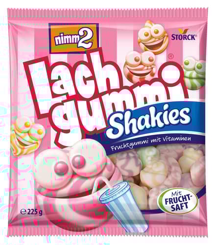nimm2 Lachgummi Shakies sind ein erfreuliches Süßwarenerlebnis mit den lebhaften Gesichtern. Für die weichen Gelee-Stücke werden erfrischende Magermilch und leckere Fruchtsäfte verwendet, die mit Vitaminen angereichert sind. In den Geschmacksrichtungen Zitrone, Himbeere, Gartenfrucht, Blaubeere, Erdbeere und Pfirsich-Maracuja-Frucht erfreuen diese farbenfrohen fruchtigen ""Shakes"" Kinder und Erwachsene gleichermaßen.
