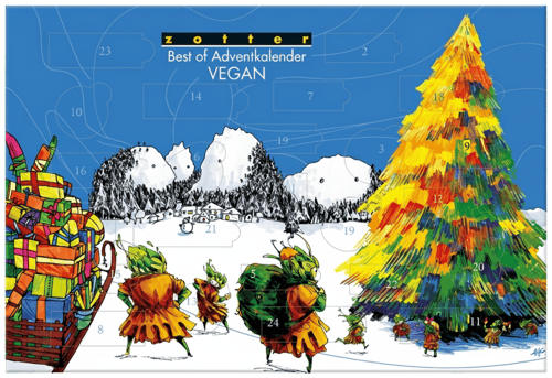 Der Zotter BIO Adventkalender Best of vegan ist eine liebevoll gestaltete Einladung, die Vielfalt pflanzlicher Schokolade Tag für Tag neu zu entdecken. Hinter jedem der 24 Türchen wartet eine vegane Köstlichkeit – mal cremig, mal fruchtig, mal überraschend knusprig. Ob handgeschöpfte Pralinen, pure Bean-to-Bar-Tafeln oder kreative Sorten mit Cashewnougat und Ahornzucker – dieser Kalender feiert die Weihnachtszeit mit Geschmack, Fantasie und Verantwortung. Begleitet von einem märchenhaften Wichtelmotiv wird er zum stimmungsvollen Begleiter durch den Dezember.