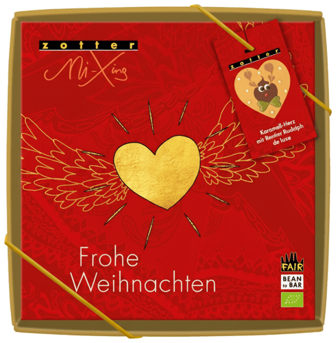 Zotter BIO Weihnachtsherz Karamell mit Rentier Rudolph