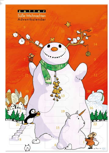 Der Zotter BIO Adventkalender Süße Weihnachten verbindet festliche Vorfreude mit hochwertiger Schokolade in Bio‑ und Fair‑Handelsqualität. Mit 24 unterschiedlichen alkoholfreien Mini‑Tafeln – pur und gefüllt – begleitet er Kinder und Erwachsene durch die Adventszeit. Verpackt im ansprechenden Schneemann‑Design mit Goldeffekt setzt er ein stimmungsvolles Highlight für die Weihnachtszeit.