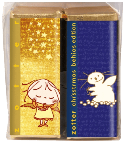 - Zehn vegane Schokoanhänger mit weihnachtlichen Motiven.