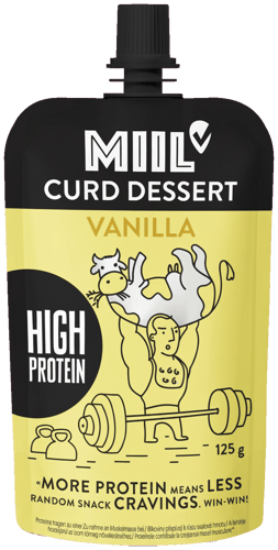 Miil High Protein Vanille-Quarkdessert, das zu mehr als der Hälfte aus Quark (55 %) besteht, was für einen cremigen Geschmack und eine ordentliche Portion Protein sorgt. Darüber hinaus wird es ganz ohne Zuckerzusatz hergestellt und enthält nur natürlich vorkommende Zucker.