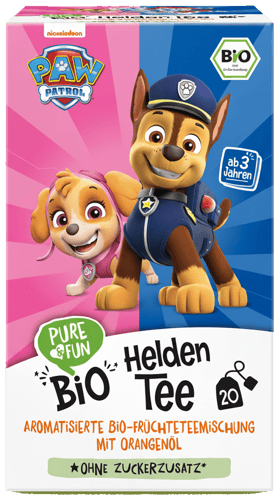 PURE & FUN BIO PAW Patrol Helden Tee ist eine aromatisierte Bio-Früchteteemischung mit Orangenöl. Diese Teemischung bietet ein fruchtiges Geschmackserlebnis und ist ideal für die ganze Familie.