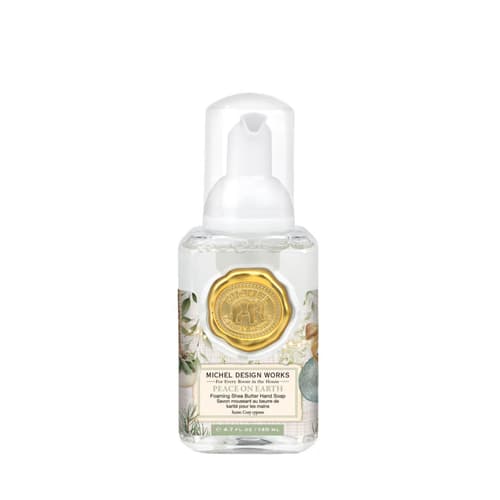 Michel Design Works Seifenschaum Peace On Earth verwandelt die Handreinigung in ein luxuriöses Erlebnis. Der Pumpspender erzeugt einen cremig-festen Schaum, der deine Hände sanft reinigt und perfekt hydratisiert. Angereichert mit feuchtigkeitsspendender Sheabutter und Aloe Vera hinterlässt er ein seidig weiches Gefühl und einen zarten Duft von Flieder und lila Blüten, untermalt von einem Hauch weißer Blumen. Umweltfreundlich durch den sparsamen Einsatz von Flüssigseife, bietet dieser Schaum eine hygienische und praktische Option für die tägliche Handpflege.
