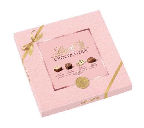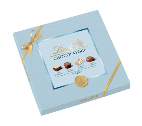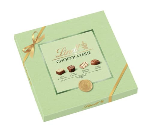 Die Lindt Chocolaterie bringt Vielfalt und eleganten Genuss zusammen: Liebevoll gestaltete Verpackungen in Lind(t)grün, Hellblau oder Rosé enthalten eine Auswahl raffinierter Pralinen. Gefüllt sind sie mit vier verlockenden Sorten – Milch & Cacaonibs, Choco & Mandel, Haselnuss & Nougat und Vanille & Mandel – und bieten damit den passenden Moment für Dich selbst oder für jemanden, dem Du eine Freude machen möchtest.