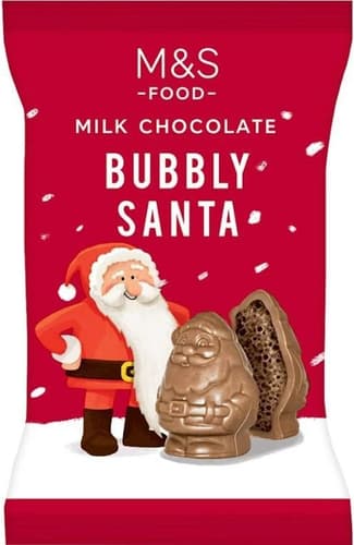 Der „Milk Chocolate Bubbly Santa“ von M&S besteht aus aerierter Vollmilchschokolade in Form eines Weihnachtsmanns – leicht in der Textur, mit reichhaltigem Geschmack und hergestellt aus verantwortungsvoll bezogener Kakaomasse.