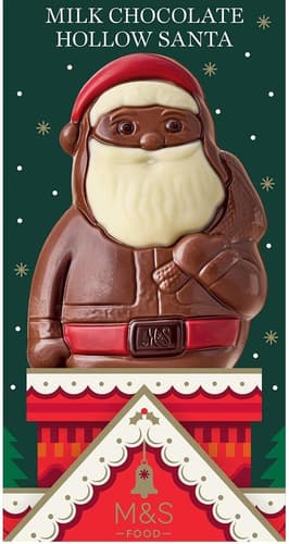 Der Milk Chocolate Hollow Santa von M&S ist eine hohle Figur aus Vollmilchschokolade mit roten und weißen Akzenten – ideal zum Füllen von Weihnachtsstrümpfen oder als kleiner festlicher Genussmoment.