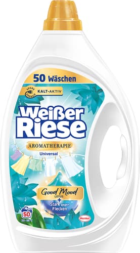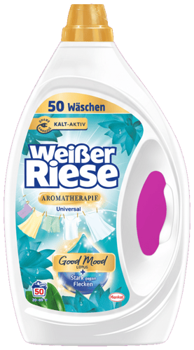Weißer Riese Aromatherapie Universal ist ein Waschmittel mit natürlichen Blütenessenzen, das Ihrer Wäsche einen angenehmen Duft verleiht. Es bietet effektive Reinigung und entfernt Flecken schon ab 20 °C, wodurch Energie gespart werden kann.