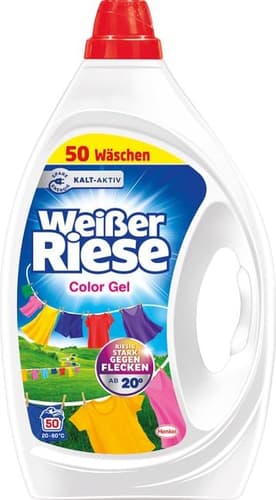 Weißer Riese Color Gel je univerzální prací gel, který účinně odstraňuje skvrny již při teplotě vody 20 °C. Díky své silné čisticí schopnosti je vhodný pro velké množství prádla a zanechává jej hygienicky čisté s dlouhotrvající svěžestí.