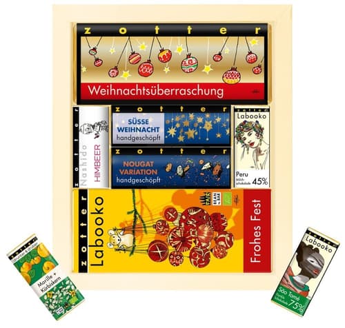 Das Zotter BIO Geschenkset „Weihnachtsüberraschung“ ist eine vielfältige Zusammenstellung aus acht ausgewählten Schokoladen, die festliche Aromen und kreative Kombinationen vereint. Ideal zum Verschenken oder selbst Genießen – für Schokoladenliebhaber, die Vielfalt schätzen und sich in der Weihnachtszeit gern überraschen lassen.