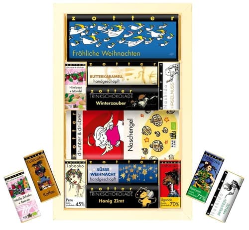 Das Zotter BIO Geschenkset „Fröhliche Weihnachten“ vereint 14 sorgfältig ausgewählte Schokoladen in einem festlichen Mix – von handgeschöpften Klassikern bis hin zu Trinkschokoladen und kreativen Mini-Variationen. Diese Zusammenstellung bringt weihnachtliche Aromenvielfalt in jeden Moment und ist ideal als hochwertiges Geschenk oder zum eigenen Genießen in der Adventszeit.