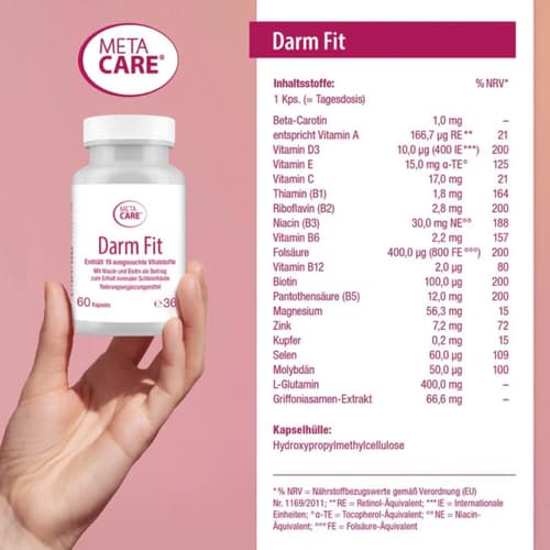 Meta-Care Darm Fit ist ein Kombinationspräparat mit wertvollen Darm-Nährstoffen: