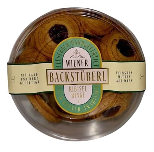 Ein traditionelles, mürbes Teegebäck, das die Herzen von Liebhabern österreichischer Mehlspeisen höherschlagen lässt. Die Ribiselaugen vom Backstüberl bestehen aus einem zart-mürben Teig und sind mit feiner, fruchtiger Ribiselmarmelade (rote Johannisbeere) gefüllt. Ein süßer Genuss, der perfekt zum Kaffee oder als Snack für zwischendurch passt.