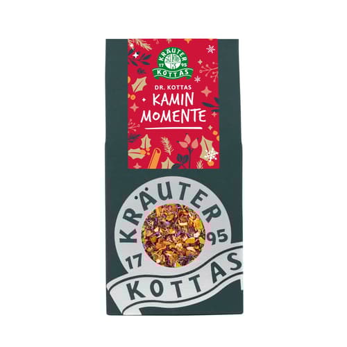 Wenn draußen die Fensterscheiben eisig anschlagen und der frostige Winterwind durch die Gassen pfeift, ist die Zeit für entspannte Momente gekommen: DR. KOTTAS Kaminmomente mit feinem Zimt- und Früchtearoma lädt zum Einkuscheln, Loslassen, Träumen und Genießen des Augenblicks ein. Jeder Schluck des köstlichen Wintertees schenkt die wohlige Wärme und Geborgenheit eines knisternden Kaminfeuers.