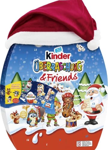 Der kinder Überraschung & Friends Adventskalender ist ein saisonaler Adventskalender mit Schokoladenüberraschungen der Marke „Kinder“. Er enthält verschiedene Produkte aus der kinder‑Familie und eignet sich zur täglichen Nutzung im Advent bis zum Heiligabend. Der Kalender bietet eine bekannte Qualität für den Süßwaren‑Genuss in der Vorweihnachtszeit.
