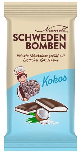 Die Schwedenbomben Kokos Tafel kombiniert das klassische luftige Schaumgefüge mit zarter Schokolade und einer intensiven Kokosnote. Diese Tafel bietet ein Zusammenspiel aus weicher Textur und ausgewogenem Kokos‑Geschmack in einem handlichen Schokoladenformat für den Genuss zwischendurch.
