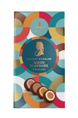 Die Mozart Koogles Mix ist eine Pralinenmischung mit verschiedenen Geschmacksrichtungen, inspiriert von der klassischen Mozartkugel. Die Sortenvielfalt umfasst Kombinationen mit Nougat, Frucht- oder Kaffeearomen, jeweils umhüllt von zarter Schokolade. Ideal für alle, die Abwechslung in einer Packung genießen möchten.