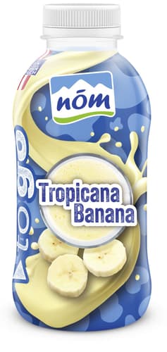 NÖM to go Bananenmiclh ist ein ultrahocherhitztes, süßes Milchmischgetränk mit Bananenmark und Bananensaft.