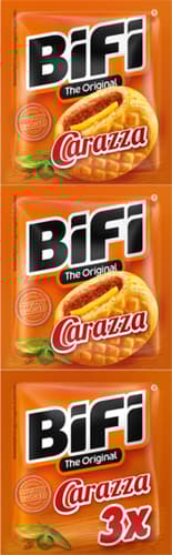 Der Pizza-Snack für die Hosentasche! Die BiFi Carazza ist die perfekte Kombination aus herzhafter Salami, fruchtiger Tomatensauce und würzigem Käse, alles sicher eingehüllt in einen weich gebackenen Teigmantel. Es ist der ideale Snack für alle, die den Geschmack einer Pizza lieben, aber gerade unterwegs sind.