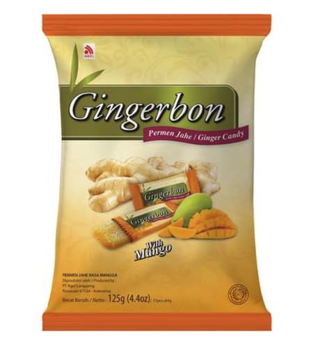 Zutaten: Zucker, Tapiokastärke, Ingwer 7,5 %, Kokosöl (vollständig hydriert), Aroma 0,2 %, Mangoextrakt 0,1 %.