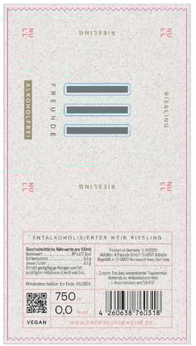 Der III Freunde Riesling Alkoholfrei ist ein alkoholfreier Wein, der die typischen Eigenschaften eines Rieslings bewahrt. Mit seiner fruchtigen Note und angenehmen Säure eignet er sich ideal als Begleiter zu leichten Speisen oder als erfrischendes Getränk für besondere Momente.